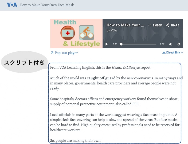 「ネットで気軽に教材が欲しい」ということであれば Voice of America English Newsをおすすめ。ニュースサイトですが、英語学習のためのページが豊富で、実際のニュースよりもゆっくり、はっきりと英語が読まれます。