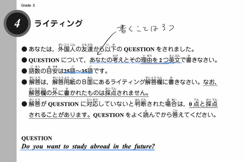 - 英検3級ライティング問題の書き方とコツ